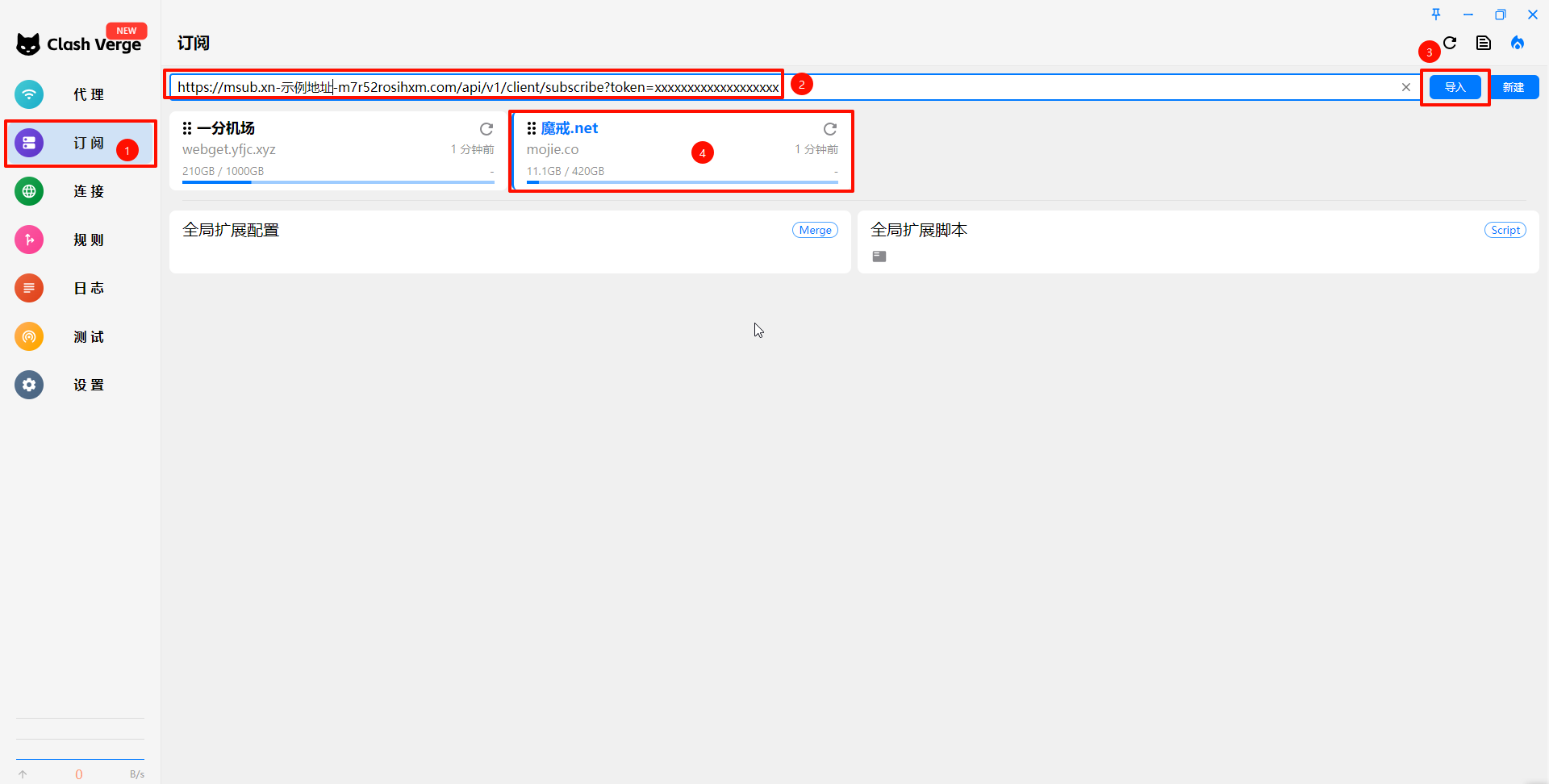 - 将 订阅地址 粘贴到 输入框 点击 导入